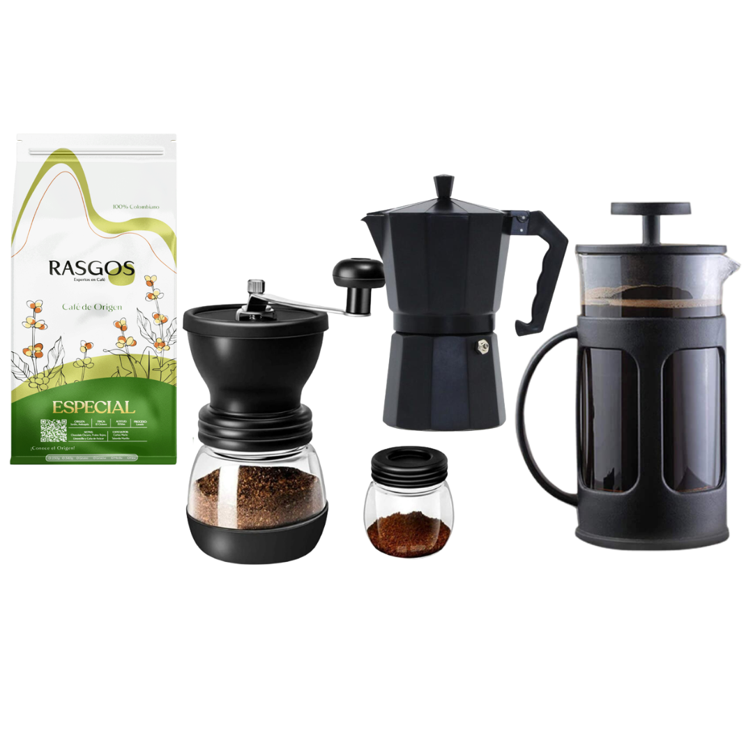 Kit Café Colombiano RASGOS x3 | Café Insignia 250 g + Café Carmesi Bourbon Rosado 250 g + Café Exotico Gesha 250 g