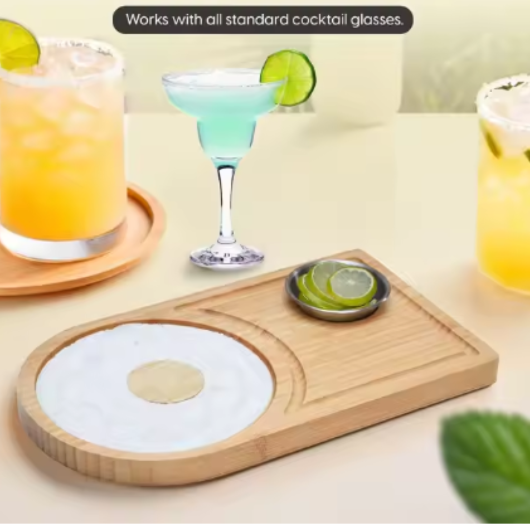 La bandeja para michelar de bambú de un puesto es el accesorio perfecto para bares, restaurantes o para disfrutar en casa con estilo. Su diseño práctico y elegante permite organizar todo lo necesario para preparar una michelada en un solo lugar: vaso, sal, limón y aderezos.