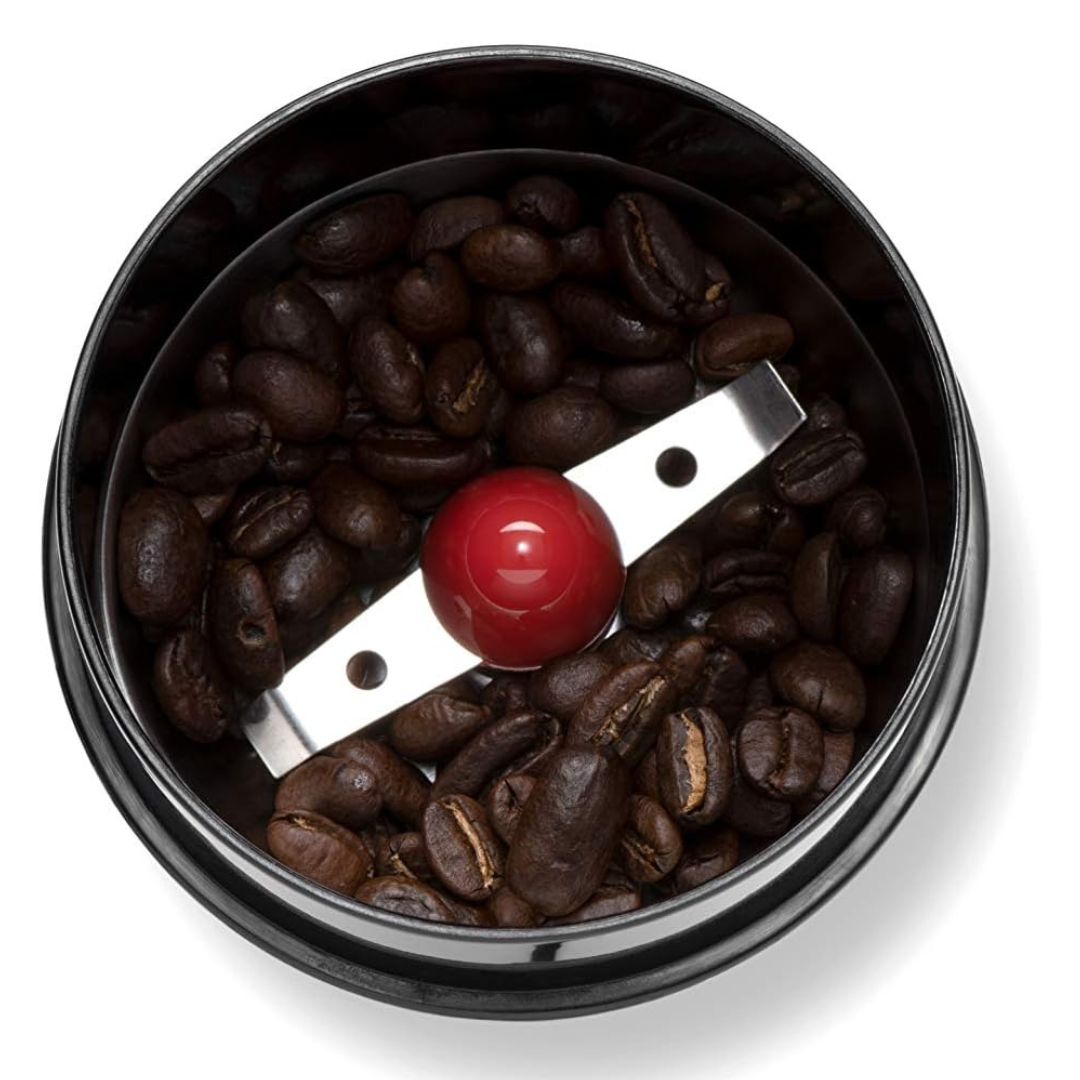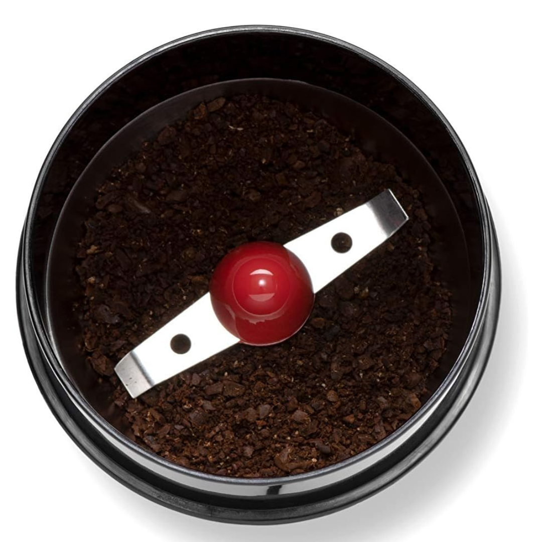 Muele tu café en segundos con su motor ágil y cuchillas de acero inoxidable. El control por pulsos desde la tapa transparente te permite elegir desde moliendas gruesas para prensa francesa hasta finas para moka o filtro, simplemente variando el tiempo de funcionamiento. Su cuerpo metálico con grip de puntos ofrece agarre seguro, mientras el bloqueo de seguridad en la tapa evita activaciones accidentales. Depósito para hasta 60 g de café, suficiente para preparar varias tazas. Compacto y fácil de limpiar, con guarda cable integrado para una encimera ordenada.