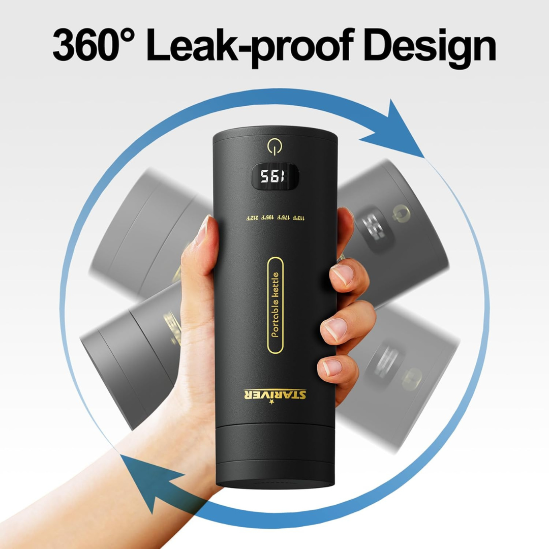 Lleva agua caliente a donde vayas con el Hervidor Portátil Eléctrico Stariver. Su diseño compacto y ligero es ideal para viajes, oficina o el hogar, permitiéndote calentar agua de forma rápida y segura. Fabricado en acero inoxidable con exterior negro mate, garantiza durabilidad y una apariencia elegante. Cuenta con apagado automático y protección contra sobrecalentamiento, brindando tranquilidad en cada uso.