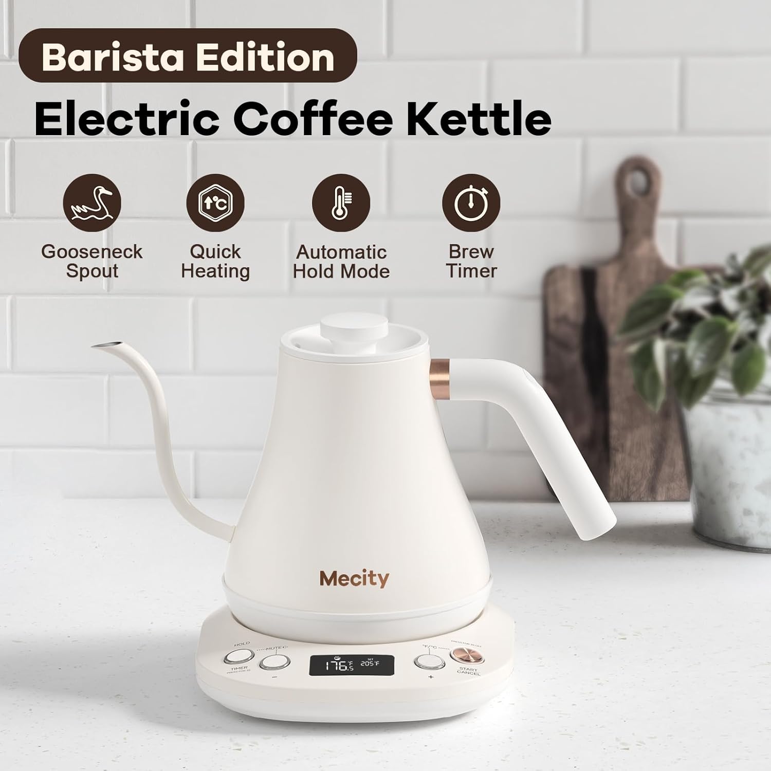 Mecity Hervidor Eléctrico Cuello de Cisne Blanco 0.8lt