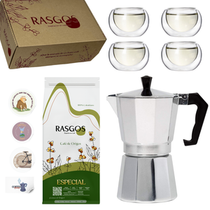 Disfruta de un café intenso y aromático con el Kit Moka 9 Tazas, un set diseñado para los amantes del espresso casero. Con una cafetera moka de 9 tazas, un café especial Insignia de 250 g y 4 vasos de doble fondo, este kit te permitirá disfrutar de una experiencia de café completa, en una presentación elegante y perfecta para regalar.