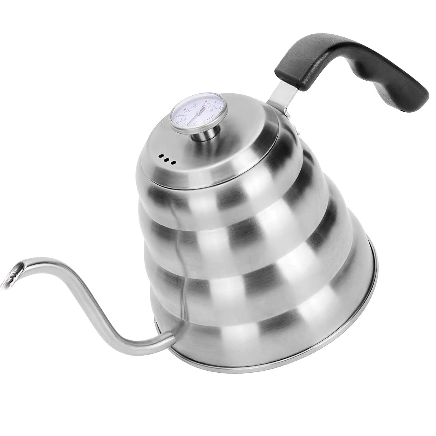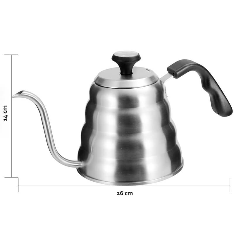 Gracias a la jarra cuello de ganso 1200ML (también conocida como tetera o jarra cuello de cisne) fabricada en acero inoxidable podrás obtener un flujo de agua estable y preciso, ideal para verter en círculos como los profesionales.
