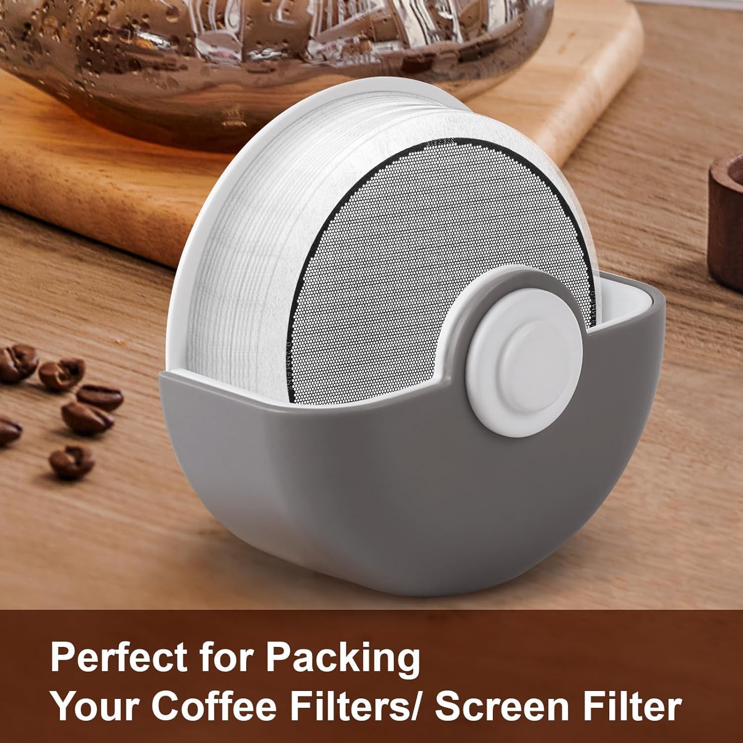 Su diseño compacto y práctico permite almacenar filtros de AeroPress, espresso, cold brew y otros métodos, manteniéndolos seguros y siempre a la mano en tu estación de café.