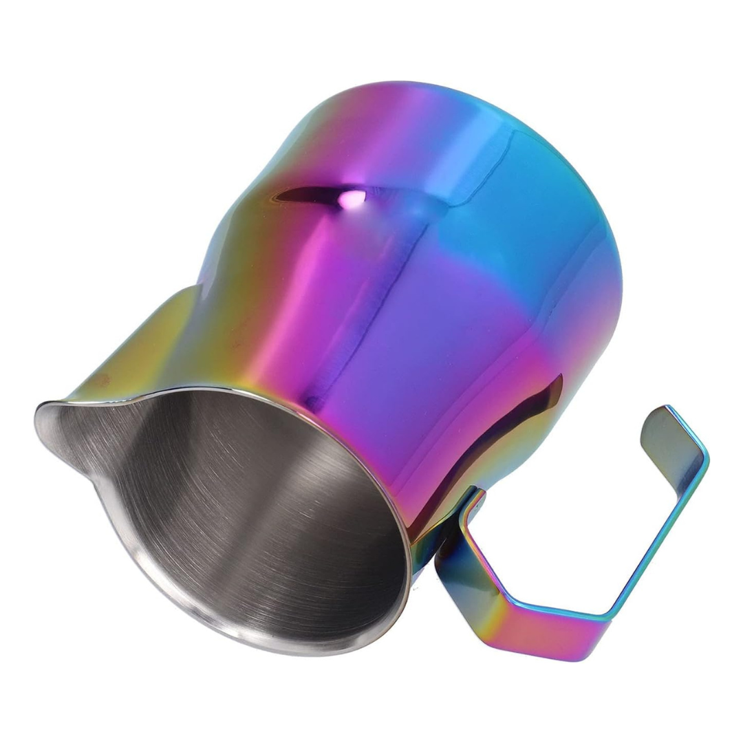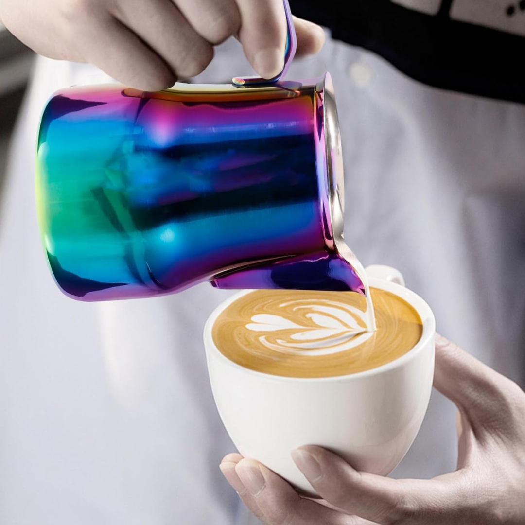 Fabricada en acero inoxidable de alta calidad, su diseño ergonómico facilita un manejo cómodo y preciso, mientras que su construcción robusta garantiza una larga durabilidad. Ya sea que estés comenzando a experimentar con el arte latte o buscando mejorar tus técnicas, esta jarra se adapta perfectamente a tus necesidades.