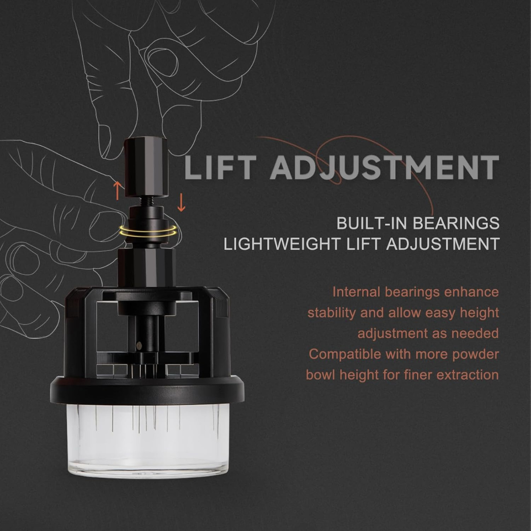 Optimiza tu técnica de preparación y mejora la calidad de cada extracción con este distribuidor WDT (Weiss Distribution Technique) de 58 mm con sistema de agujas rotativas. Diseñado para deshacer grumos, distribuir uniformemente el café molido en el portafiltro y minimizar los canales de extracción.