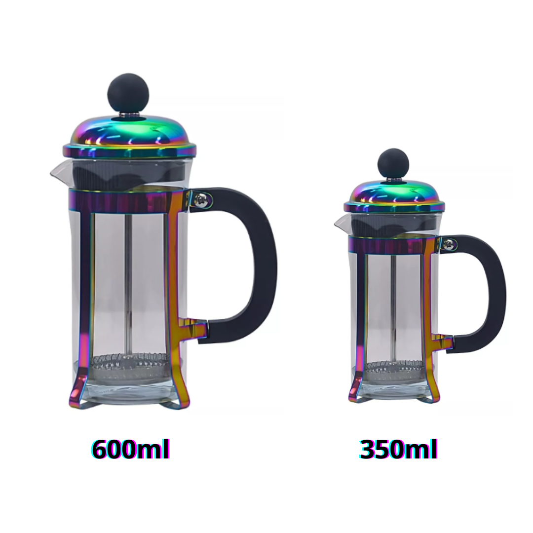 Elegancia y funcionalidad en un solo diseño. La Prensa Francesa Tornazul combina la durabilidad del acero inoxidable con un acabado tornasolado que le da un toque único a tu rutina de café. Ideal para los amantes del café que buscan una extracción perfecta con estilo.