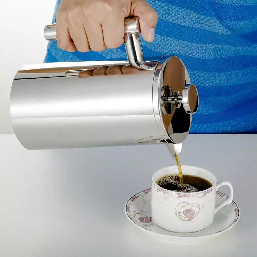 ¿Estás cansado de lidiar con vidrio roto y perder calor? El acero inoxidable es el camino a seguir. Nuestra prensa francesa está hecha de acero inoxidable 304, resistente a caídas y al óxido. Un excelente regalo para los amantes del café y el té.