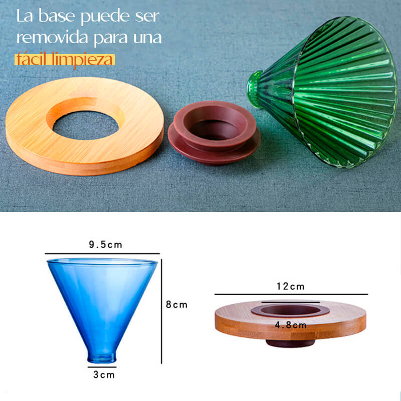 Materiales de construcción: Madera, Borosilicato, Goma.