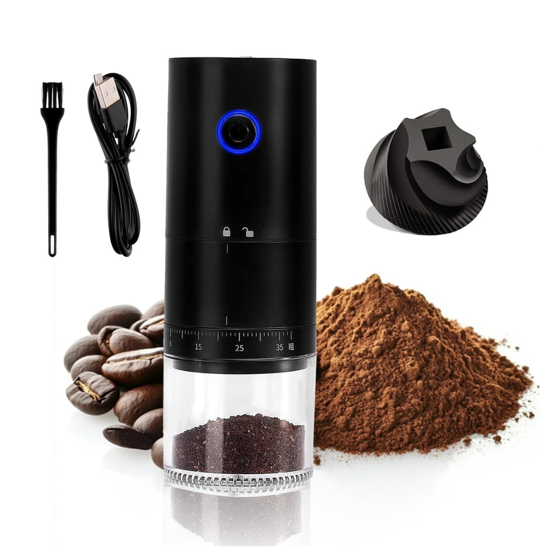 Cuenta con ajuste de molienda manual (fina, media o gruesa) para adaptarse a cualquier método de preparación: espresso, prensa francesa, V60, moka o cold brew. Además, su batería recargable mediante puerto USB te permite usarlo en casa, en la oficina o de viaje, sin depender de cables.