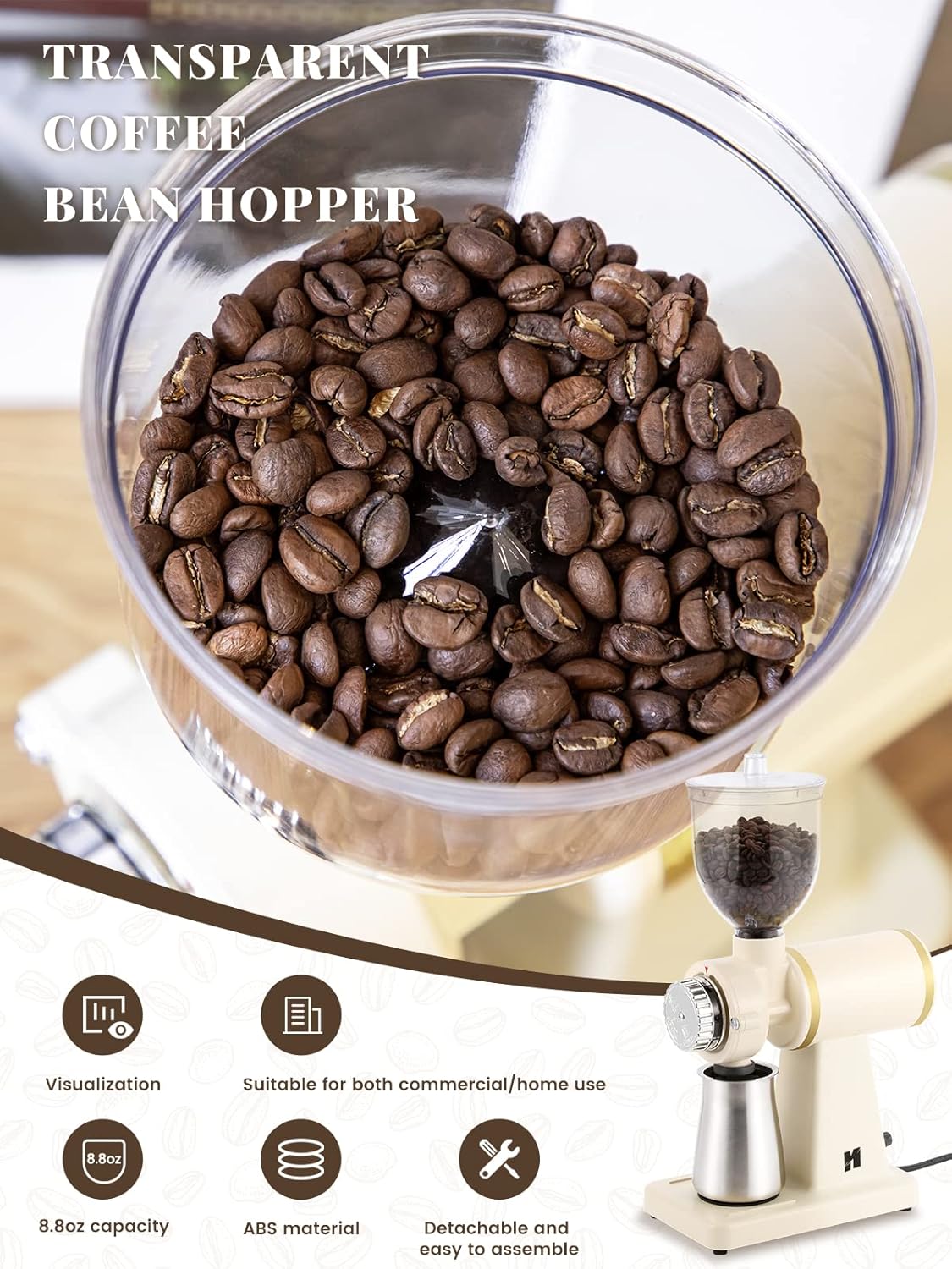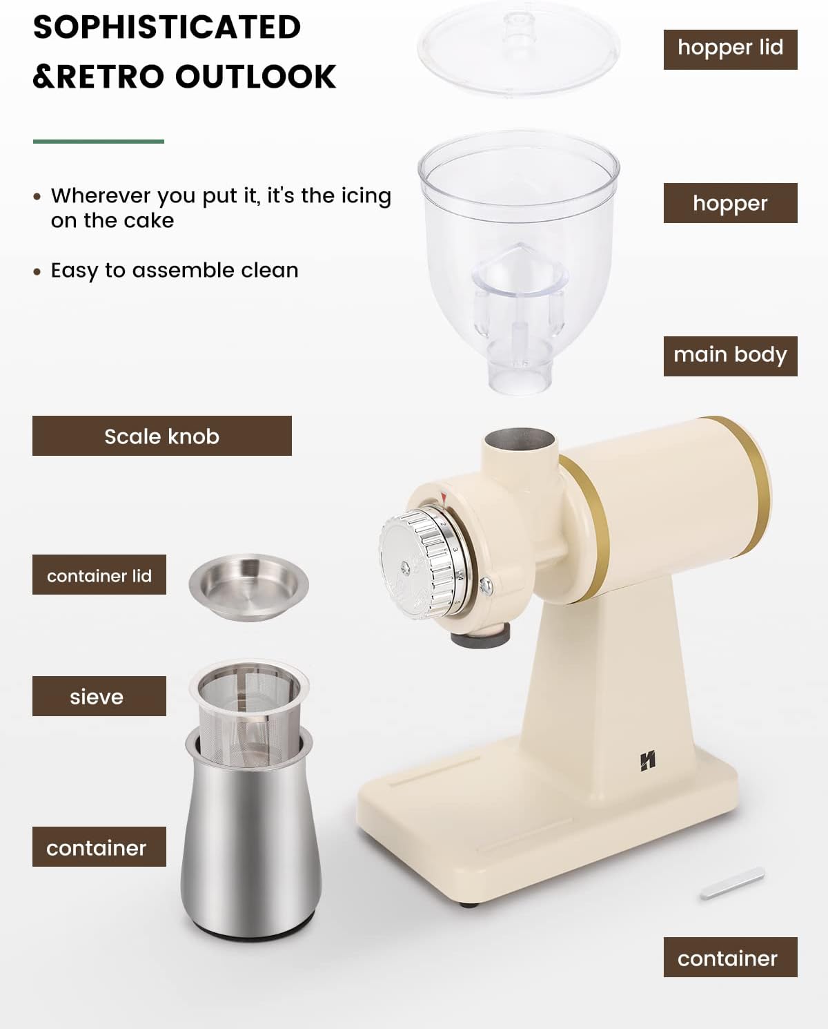 - Motor potente de 200W : Muele los granos rápidamente y de manera uniforme.