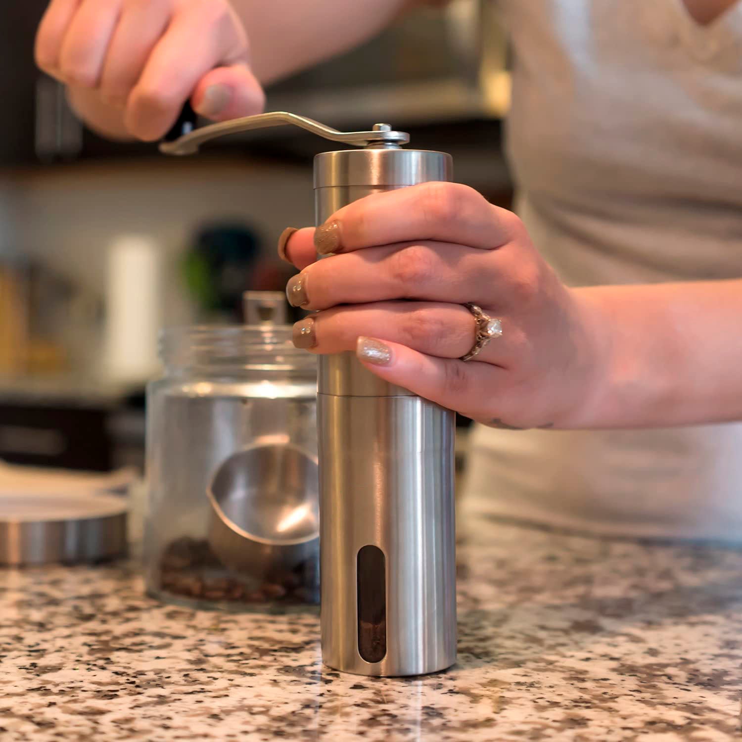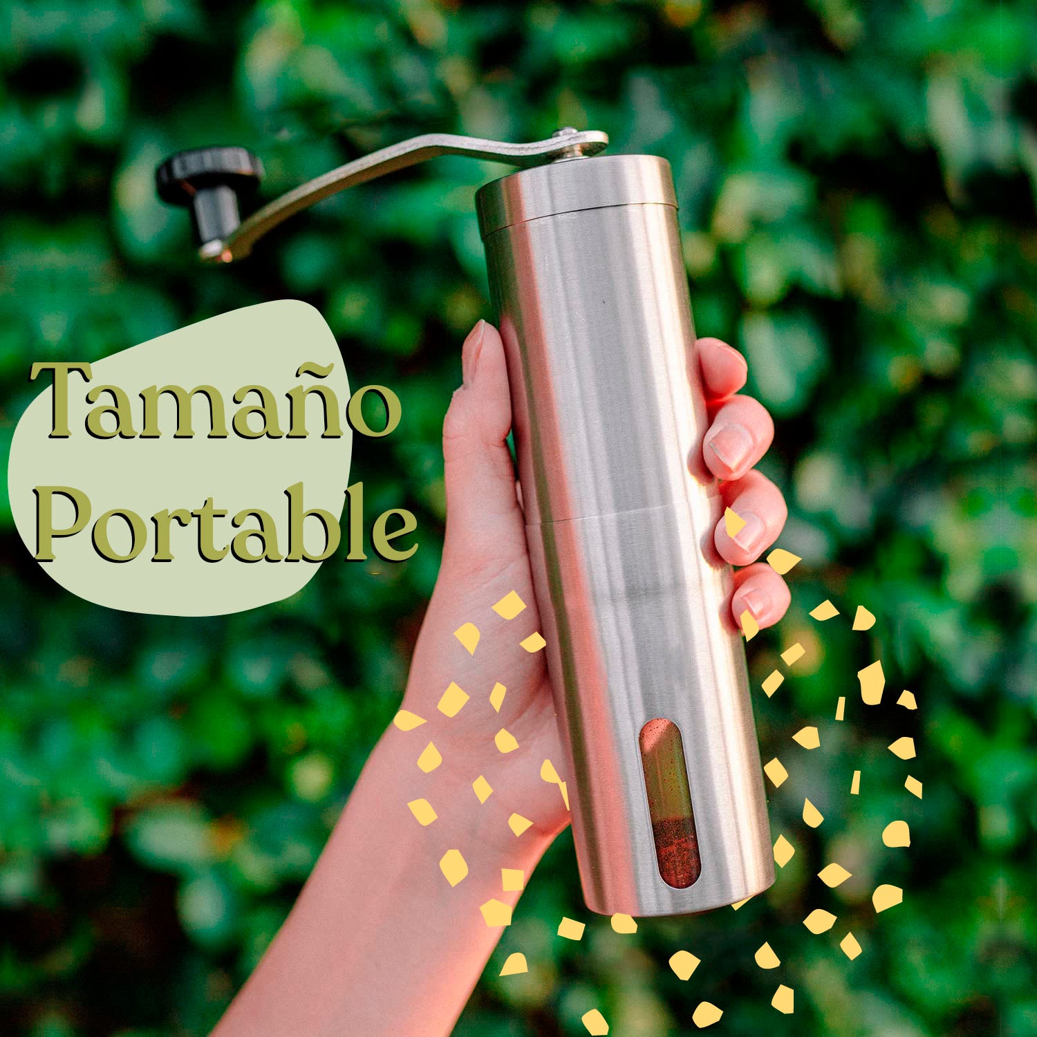 Molino Manual de Café Cilíndrico Acero Inoxidable Plateado 50gr