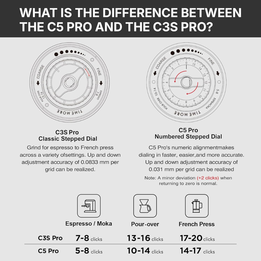 TIMEMORE C5 PRO – Molino Manual de Competencia con Ajuste de Precisión y Mango Plegable
