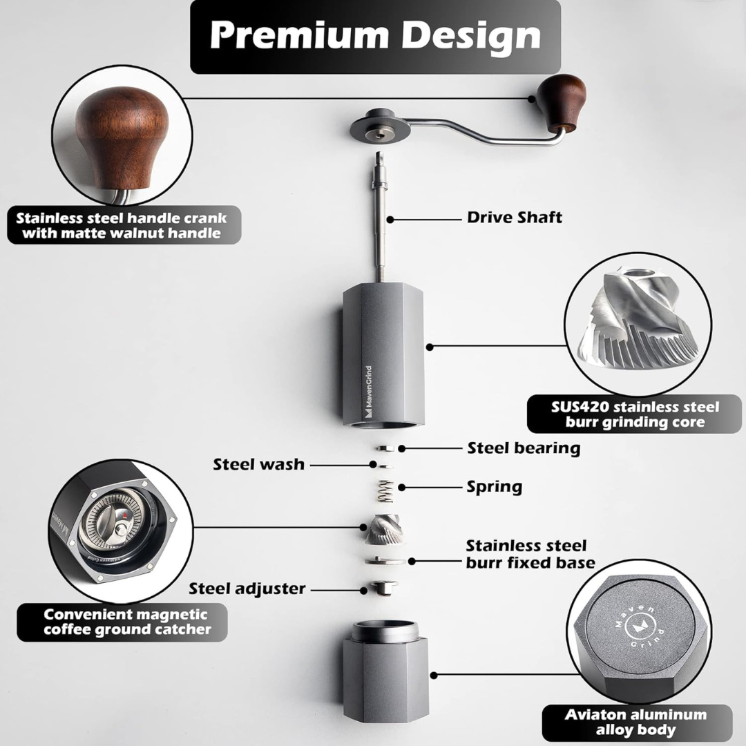 • 🎯 Molido preciso y consistente para todos los métodos: V60, Chemex, AeroPress, prensa francesa, moka y más.