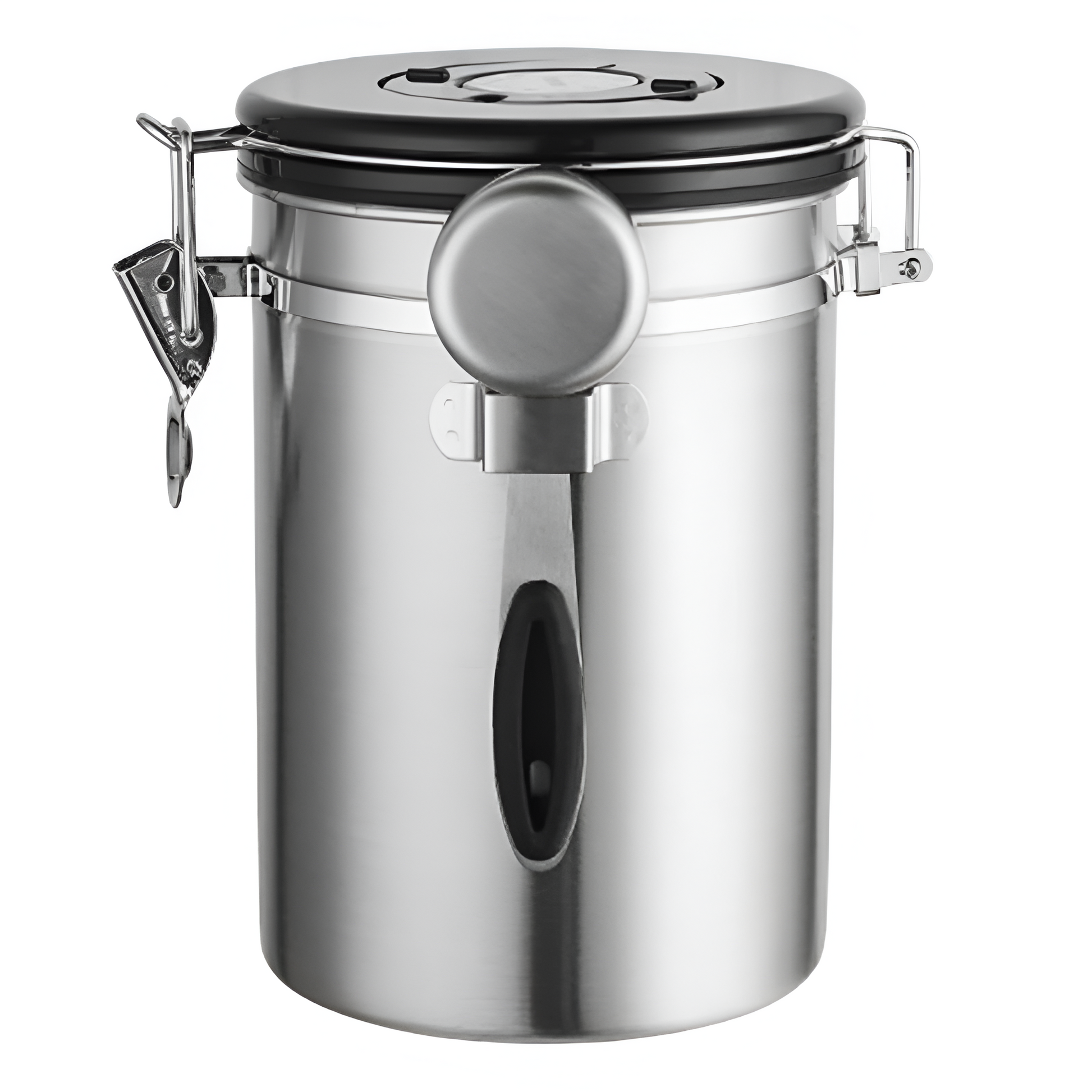 - Protección Contra la Luz: El cuerpo metálico del recipiente bloquea la entrada de luz, lo que ayuda a conservar las propiedades del café por más tiempo.