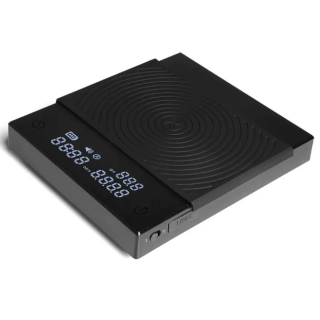 Con sensores de alta precisión, pantalla LED retroiluminada, temporizador integrado y carga por USB-C, esta báscula ofrece medición en tiempo real, velocidad de flujo (g/s) y funciones intuitivas que mejoran tu experiencia de preparación.