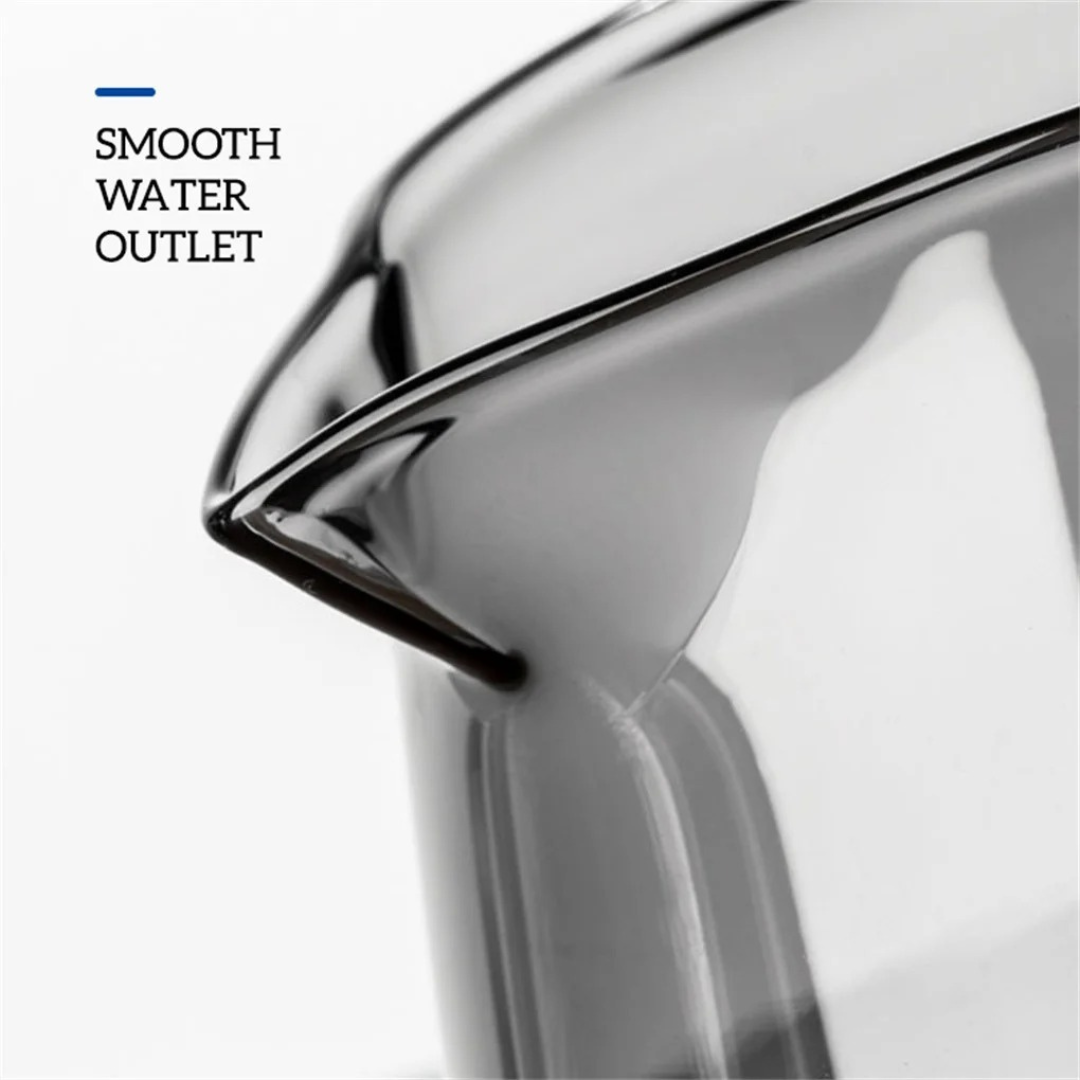 Tonalidad gris traslúcida, con líneas limpias y asa funcional que facilita el vertido sin derrames. -