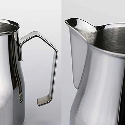 Esta taza está hecha de acero inoxidable 304 de alta calidad, que es más resistente y duradero, no se oxida ni se daña fácilmente. Tiene una capacidad de 350 ml, lo que la hace adecuada para preparar una o dos tazas de café con leche espumado. Es fácil de limpiar y lavar, solo tienes que enjuagarla con agua.