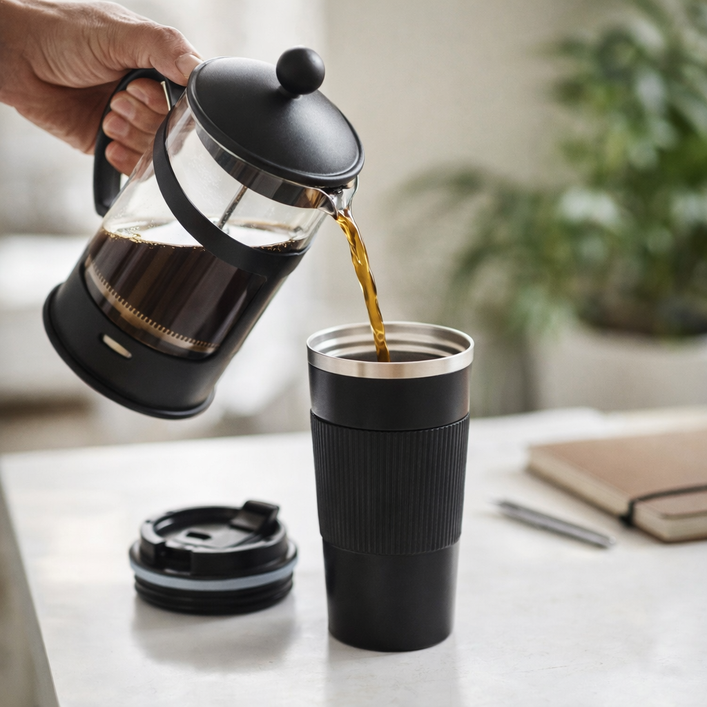 Pasa tu bebida de la prensa francesa al termo apenas esté lista y conserva un sabor más limpio, equilibrado y agradable.