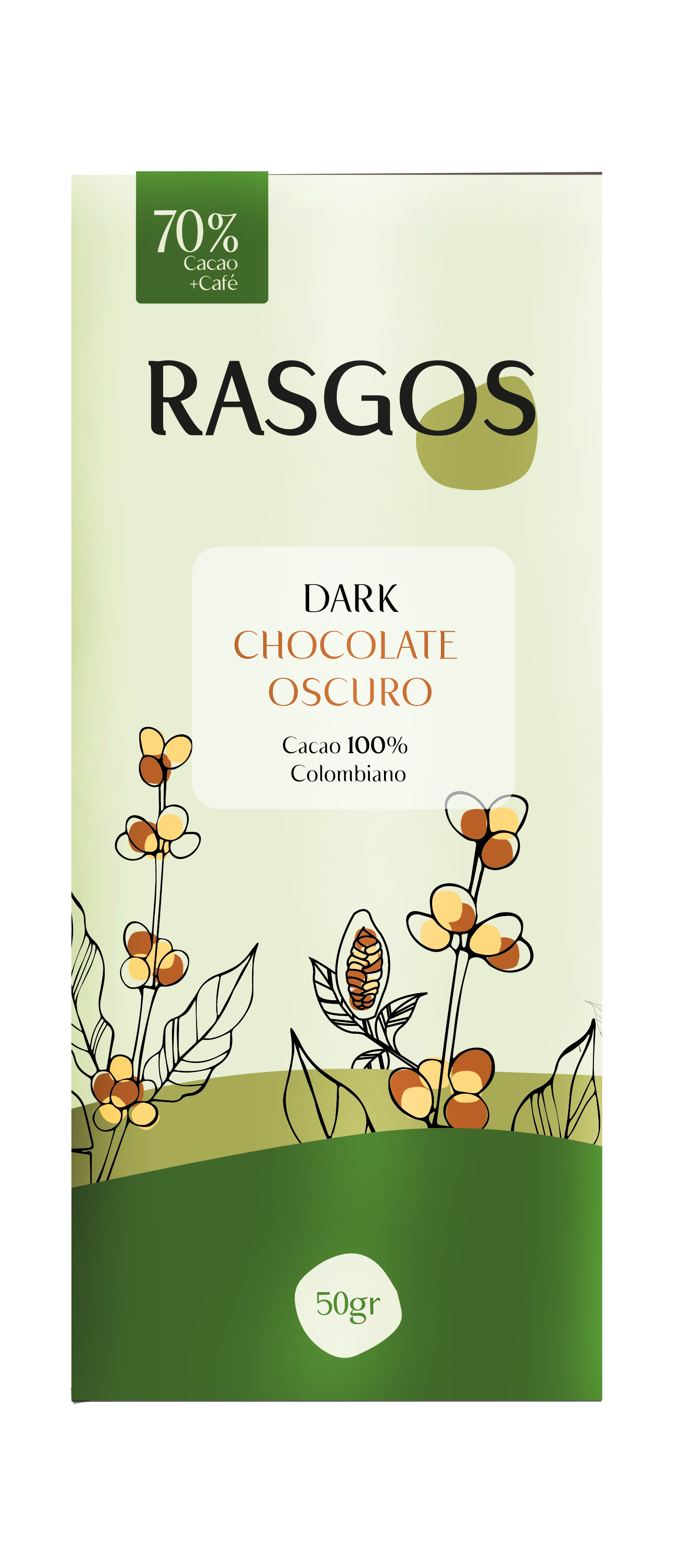 • Chocolatina de Cacao con Trozos de Café: Elaborada con 70% de cacao, esta chocolatina es el complemento perfecto para tu ritual cafetero.