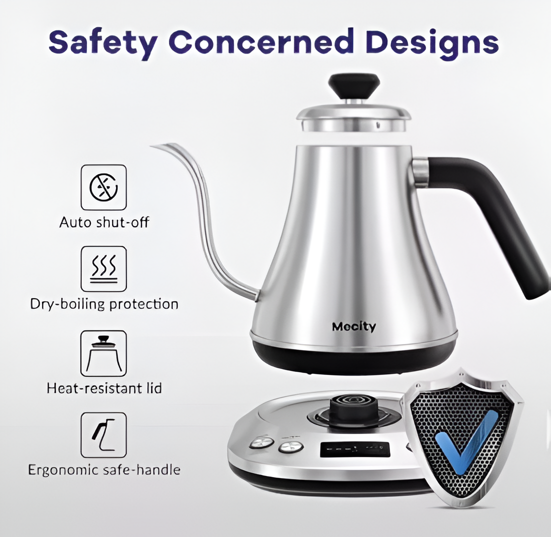 Mecity Hervidor Eléctrico Cuello Cisne Con Pantalla LCD Color Plata