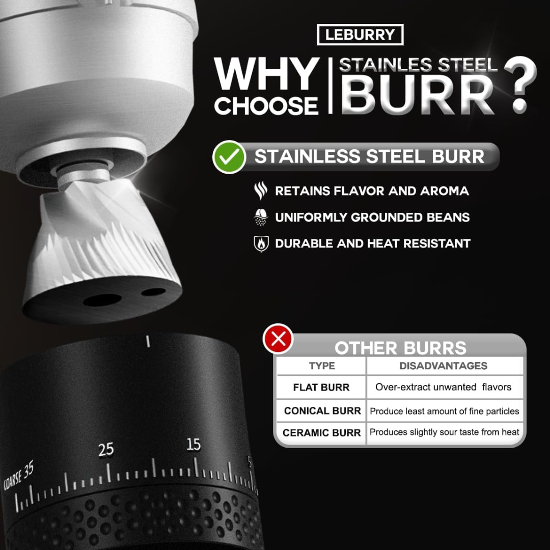 Molino Eléctrico Portátil y Recargable Muelas de Acero de Alta Potencia y 38 Niveles de Ajuste